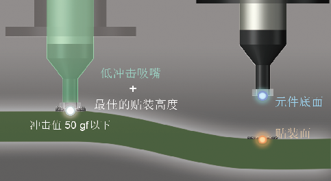 量算出的貼裝面上,可防止壓入過量或空中釋放。 貼裝。因為采用逐個吸取的方式吸取元件并對其 進(jìn)行