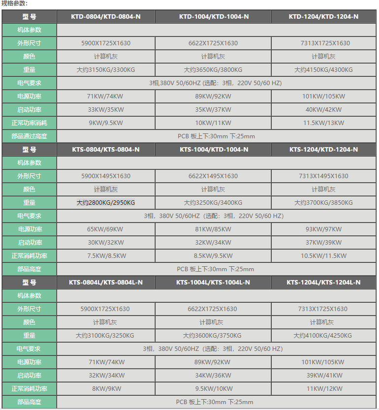 勁拓KT系列高端回流焊爐 ● 高產能低能耗,全新熱工學管理系統,有效降低成本 ● 專業應對高速生產及高精密度PCB封裝工藝 ● 控溫能力強,高控溫精度 ● 超強快速升降溫能力 ● 全程氮氣定量可控,各溫區獨立閉環控制 ● 最新冷卻技術,可選多區雙面冷卻 ● 新型二段式助焊劑回收系統 ● 雙軌雙速,單機成本,雙倍產能,節能65%。
