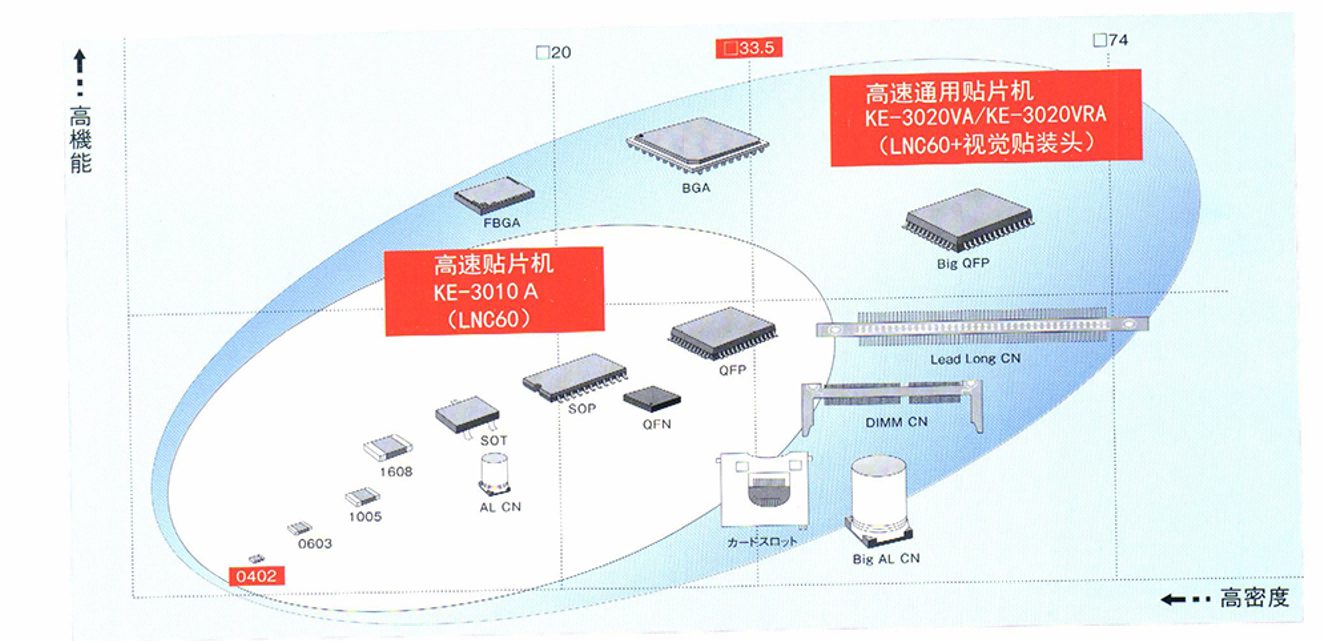 高速通用貼片機KE-3020VA/KE-3020VRA大型元件等通用元件的貼裝可采用此款機型
